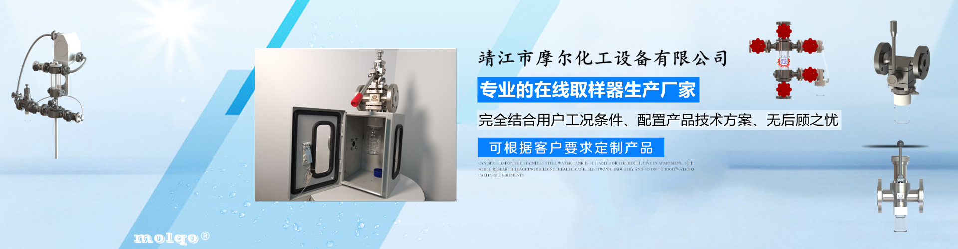 靖江市摩爾化工設備有限公司位于蘇中明珠——江蘇省靖江市城南工業園區東進路北側天元艾爾瑞內,另有生產基地位于靖江市經濟技術開發區新號路1號鼎電科技園內。我公司由數名長期從事化工生產、氟塑襯里模具開發以及機械自控設備的專業人員共同合作成立,致力于提供客戶最優的高效在線取樣、反應及精餾分離設備,為客戶提供合理的設備選型方案,以幫助客戶提高綜合生產效率以及改善生產現場環境為目標。 本公司主要制造及銷售的產品有:釜用在線取樣裝置,管道取樣閥,釜用清洗噴淋裝置、搪玻璃設備、GMP專用搪玻璃設備、氟塑襯里設備、攪拌器、釜用機械密封、氣動閥門及搪玻璃管道、襯氟閥門管道、非標不銹鋼容器,精餾塔塔器、片式冷凝器及PTFE密封件、鋯、鈦、鉭、鎳等加工件制品。我司是一家集研發銷售、設計咨詢服務于一體的專業···| 葫芦岛市 | 遂川县 | 永嘉县 | 甘南县 | 民权县 | 图们市 |